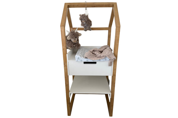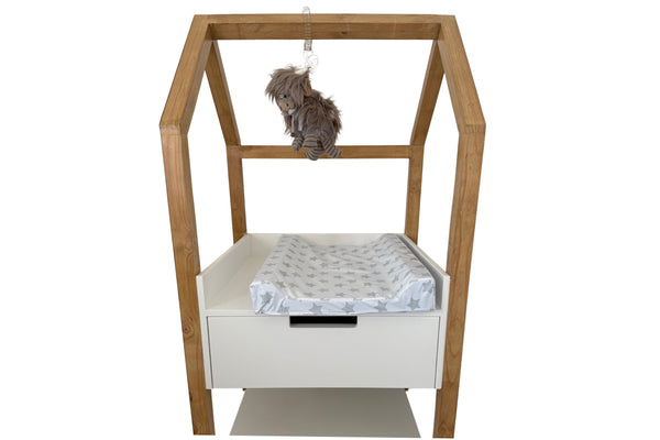 Slumber Hub's Little Haven changing station is an ideal baby changing station for a nursery with limited space but which adds something special. Use the wooden frame to hang beautiful dangles or spring characters for babies delight.